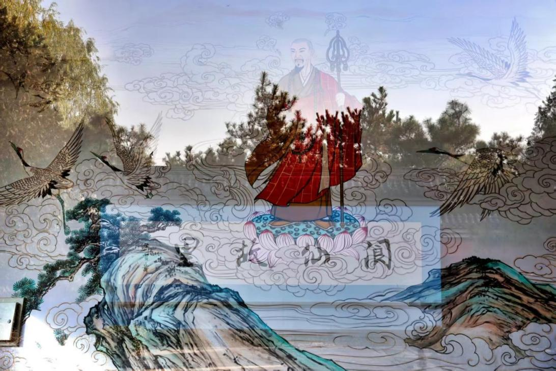 贾公祠影壁前,多重曝光晕开古今:虚化的贾岛执杖踏莲,红袍映着云纹松鹤,与现世影壁叠作一帧“魂归故里”。千年后,诗魂随天光落在此间,是故里烟火接住了长安旧客。