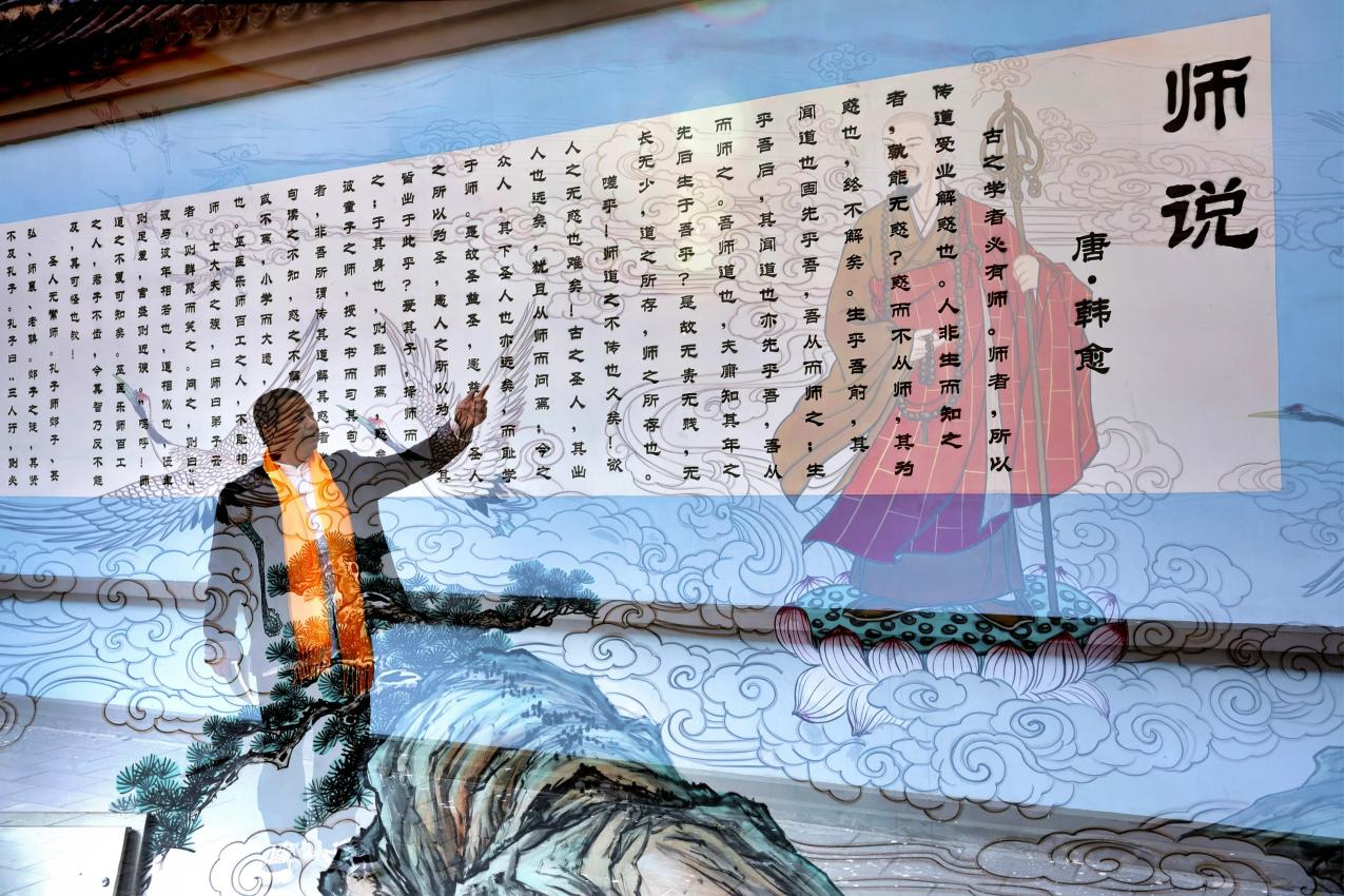 双重曝光里,贾岛诗魂踏莲而立,韩愈《师说》的墨字漫过云纹松岩,书院院长的指尖正轻触这页古今。千年诗魂落在此间,是文脉借一帧光影,在书院里续了新声。